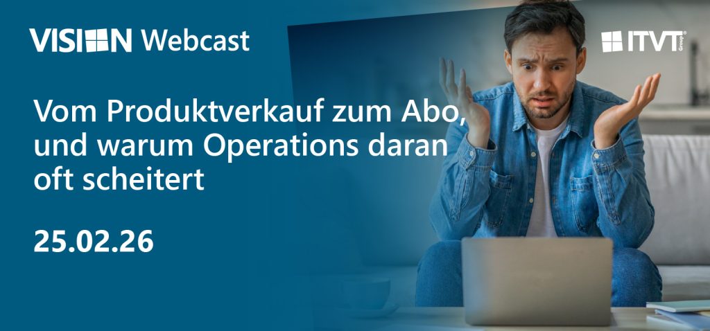 Subscription Billing ist aktuell eines der wichtigsten Themen im Maschinen- und Anlagenbau. Nach der großen Resonanz unserer Vision Roadshow in München bereiten wir das Thema nun noch einmal digital für Sie auf – kompakt, praxisnah und interaktiv. Im Vision Webcast beantworten unsere Experten Nico Klostermann und Oliver Ben Sliman Ihre Fragen live.